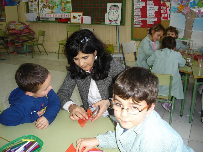 Además, cada familia ha acudido un viernes al colegio a realizar en la clase una actividad relacionada con la profesión del padre o de la madre. Y así, se han realizado manualidades, taller de peluquería y maquillaje, dramatización de cuentos y canciones, charlas educativas sobre salud, …