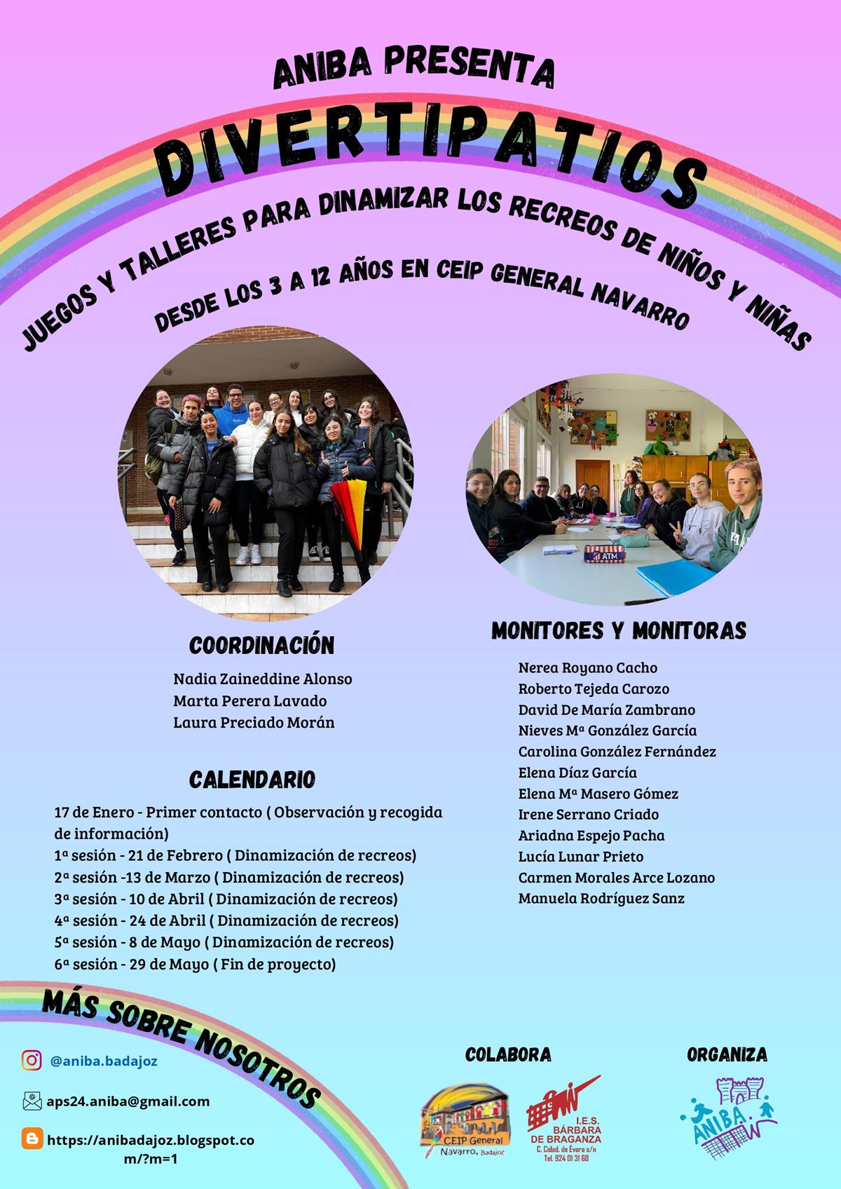 Continuamos este curso 2024/2025 con el proyecto «Divertipatios» llevado a cabo en nuestro centro a través del ciclo de Animación Sociocultural y Turística del IES Bárbara de Braganza.