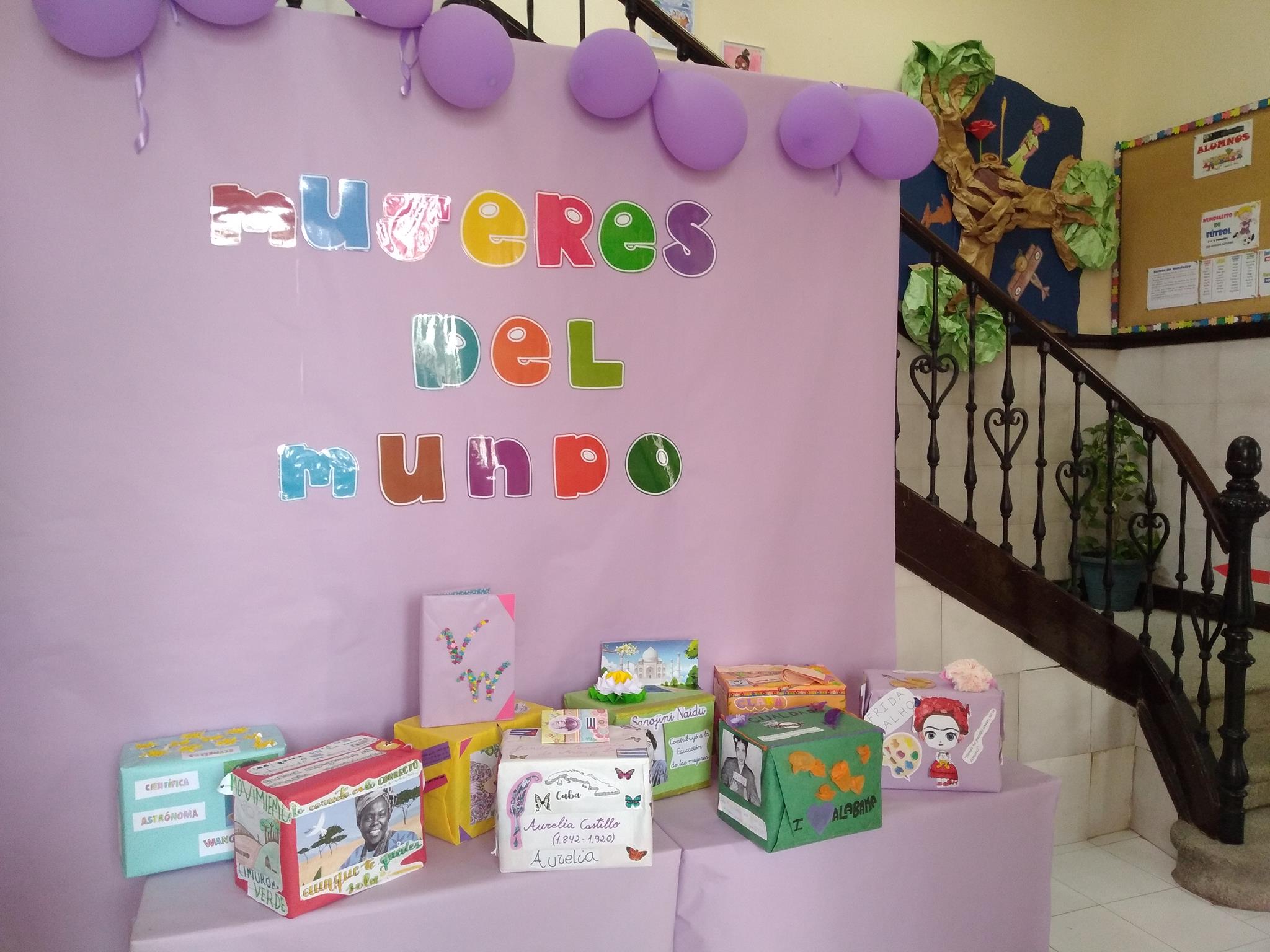 Con motivo del Día Internacional de la Mujer y contextualizándolo en el Proyecto del Centro “La Música en el Mundo”, todos los grupos del cole, desde Infantil a 6º de Primaria, han trabajado sobre una mujer relevante en la historia de la zona que les ha correspondido. Han conocido su biografía, sus hitos más importantes y, además, han elaborado una manualidad que ha consistido composición de una caja decorada con la información más importante de cada una de ellas, esta actividad se ha titulado “Mujeres del Mundo” y están expuestas en el hall de entrada del centro para que todo el alumnado pueda verlas y aprender sobre ellas.